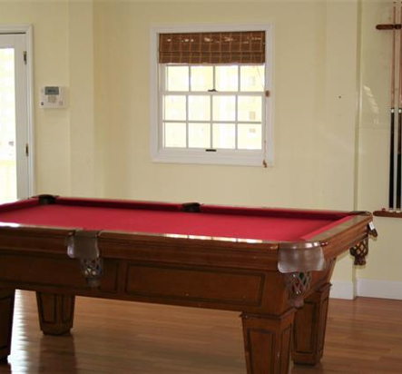 Enter the ground level and you will find a custom wet bar, refrigerator and freezer combo, and a beautiful pool table.